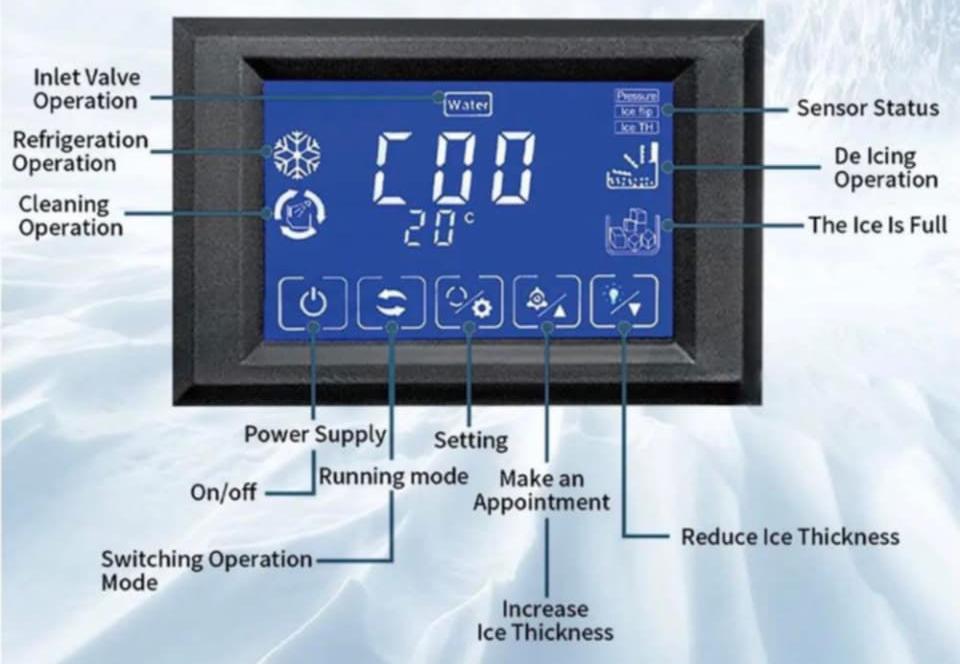 (Simple operation) the control box adopts PLC microcomputer program control, automatic ice making, ice falling and ice out; fault intelligent display.